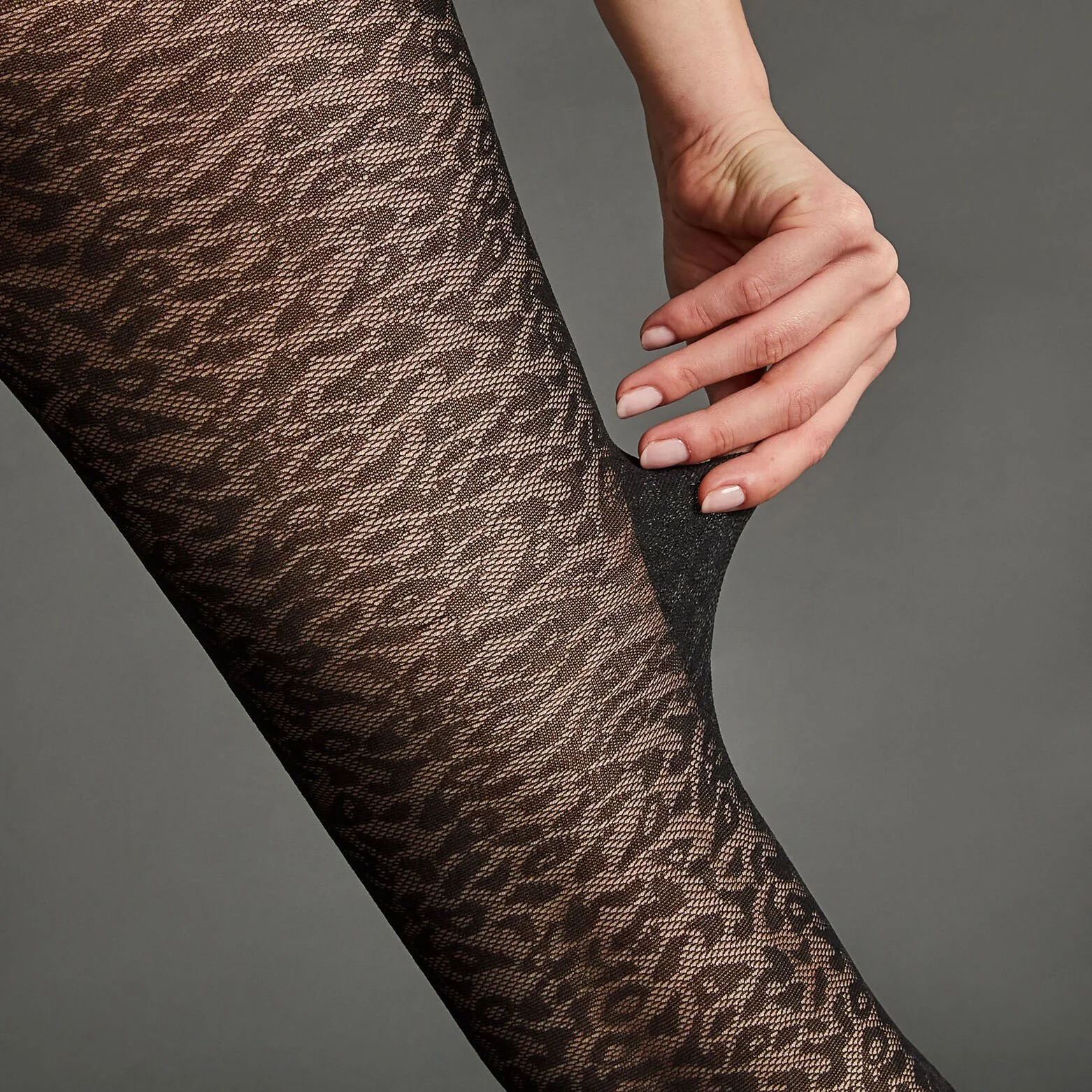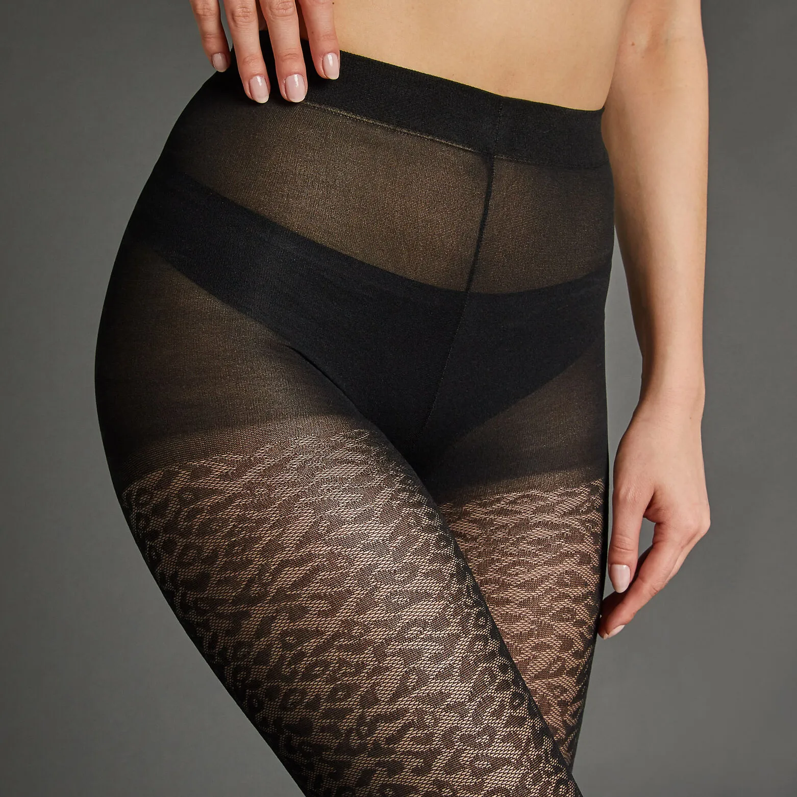 « On craque pour ces motifs léopards composés grâce à des jeux d’opacité et un effet résille pour un esprit encore plus sauvage et sexy. »