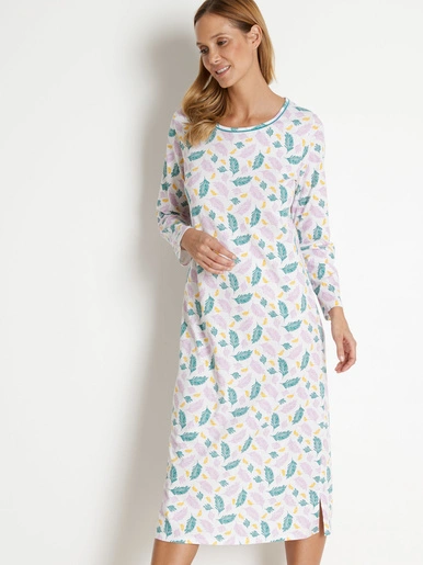 Tout en douceur et en légèreté, ces jolies chemises de nuit manches longues… En en plus, elles vendues en lot de 2, un double plaisir ! 1 unie + 1 imprimée “plumes”.