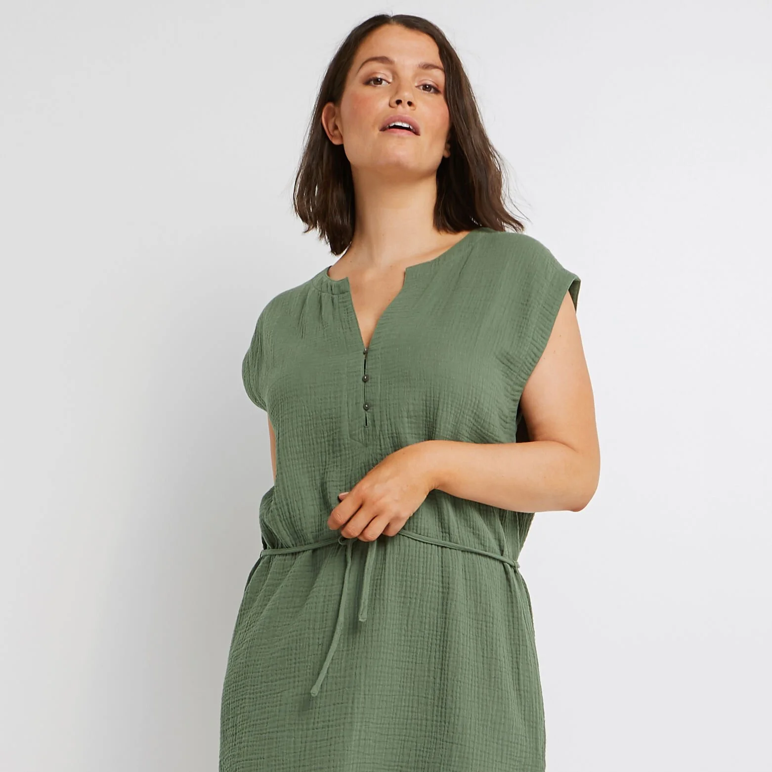 JAEL TUNIQUE GAZE DE COTON KAKI -Collants importe boutique 42595302 Z