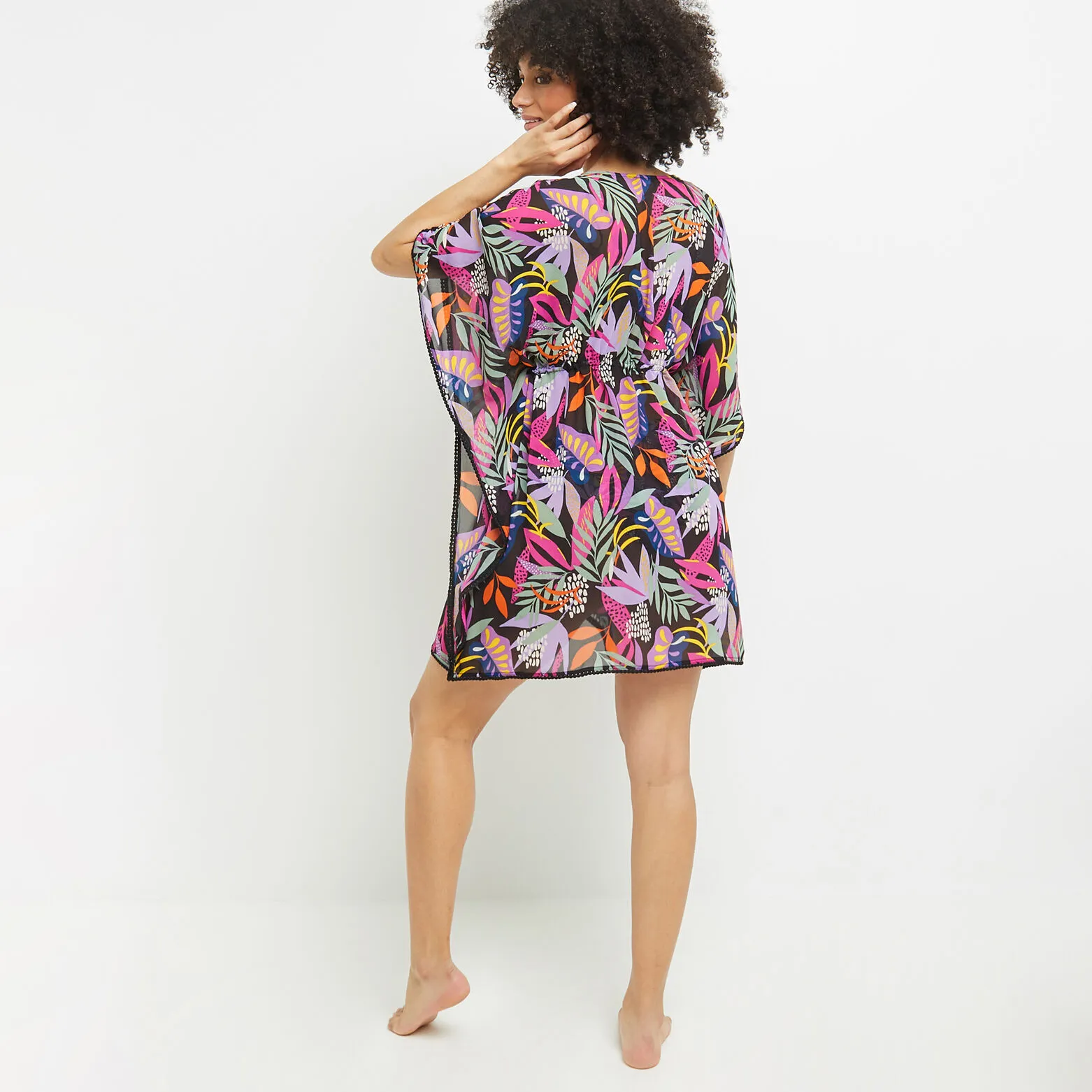 « Un motif coloré, foisonnant de motifs végétaux joyeusement stylisés, s’épanouit sur la ligne de bain LAVANDE. Vous y trouverez toutes les formes de maillots : plus ou moins échancrés ou couvrants, pour toutes les morphologies, et même de jolis paréo et tunique assortis. »