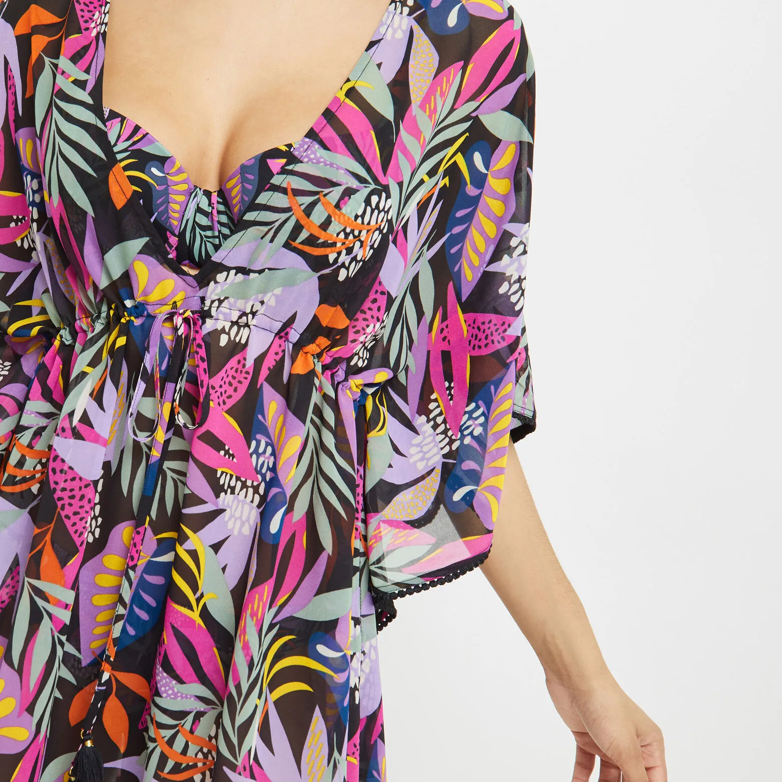 – lien coulissant à nouer taille, finition pompons fantaisie