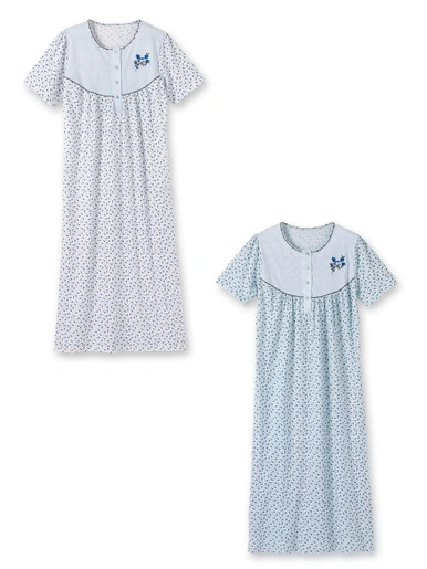 Chemises de nuit manches courtes proposées en lot de 2, mêmes tailles.