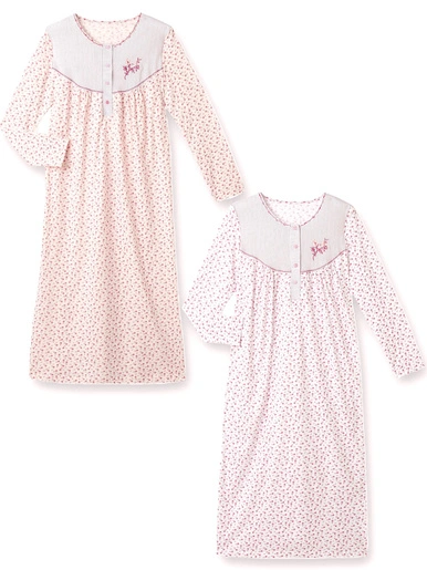 Une touche de romantisme et de féminité pour ce lot de 2 chemises de nuit longues aussi jolies que douces à porter !