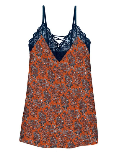 Nuisette en microfibre imprimée au motif “cachemire”.