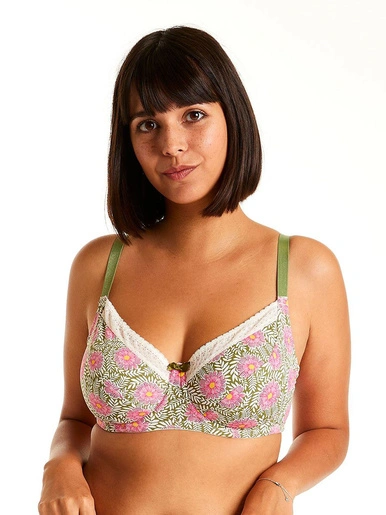 Soutien-gorge à armatures grand maintien Echo POMM’POIRE en microfibre imprimée au motif “floral”.
