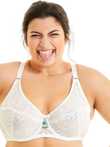 Soutien gorge à armatures grand maintien. Tout en dentelle d’inspiration végétale. Noeud plat gros grain avec bijou pendentif perles amovible à l’entre-seins. Bretelles dos larges et réglables. Bonnets entièrement doublés de tulle doux et rigide. Finition dos cheminée. Forme emboitante. Fermeture 3 agrafes, 3 positions.