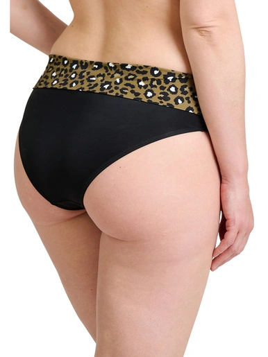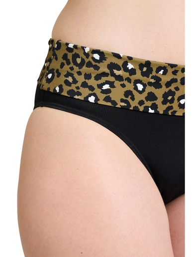 La culotte haute Escapade est multi-positions. En effet son revers imprimé peau de bête offre deux couvrances différentes en fonction des envies. La taille est donc soulignée. Cet imprimé marié avec du noir rend la ligne très féminine et originale. C’est la pièce idéale pour se démarquer cet été tout en étant très élégante. Il est réalisé à partir de polyamide recyclé.