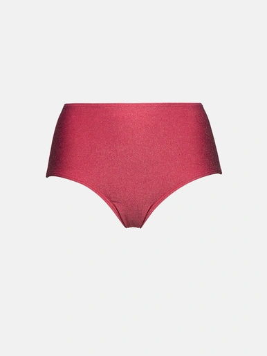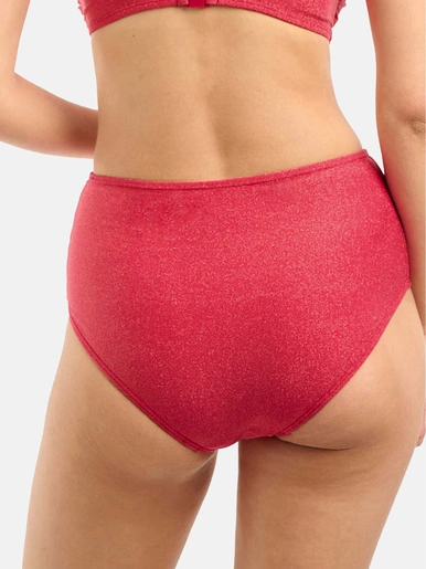 La culotte de bain taille haute de la ligne Reflet de SANS COMPLEXE offre un bon niveau de couvrance pour un look rétro chic et lumineux.