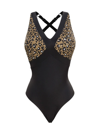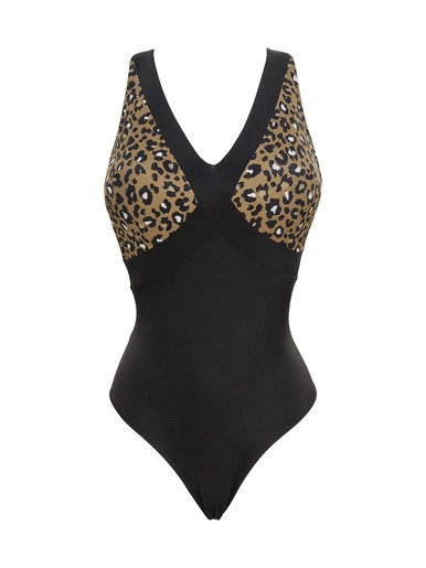 Ce maillot 1 pièce Escapade est sans armatures. Son décolleté plongeant met en valeur la poitrine. Un élastique de maintien se trouve à la basque et les coques sont amovibles. Son imprimé peau de bête marié avec du noir rend la ligne très féminine et originale. C’est la pièce idéale pour se démarquer cet été tout en étant très élégante. Les bretelles sont réglables et se portent droites ou croisées. Les accessoires sont en plastique rigide. Cette pièce de lingerie est réalisée à partir de polyamide recyclé.