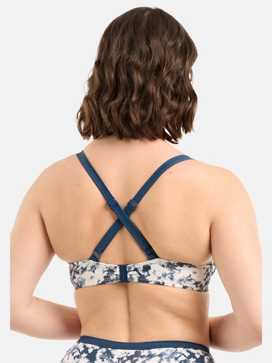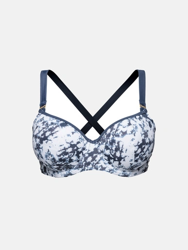 – Le coloris tie&dye bleu marine est ultra moderne, les bretelles sont en bleu marine uni