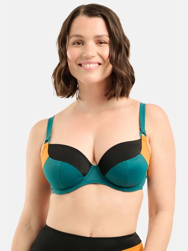 Beyond the beach, la ligne sporty chic de l’été. Le soutien-gorge de bain à armatures SANS COMPLEXE a une forme emboîtante très confortable. Il procure un bon maintien grâce à sa construction de bonnet en 3 parties.