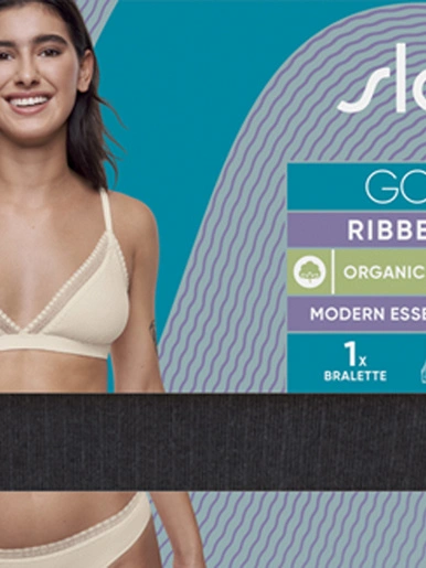 Le confort extrême avec GO RIBBED de sloggi : une nouvelle collection de sous-vêtements indispensables au quotidien, en coton biologique côtelé très doux et dentelle délicate.