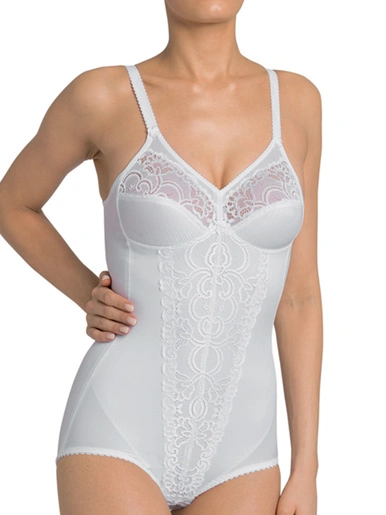 Matière douce et confortable. Effet sculptant: le corps est galbé pour une silhouette harmonisée. Bretelles douces et réglables pour un bien-aller et un maintien parfaits. Maille Jacquard, dentelle textronique et petits noeuds les bretelles et à l’entre-seins: un look très féminin et sophistiqué.